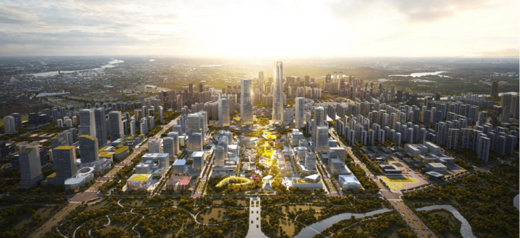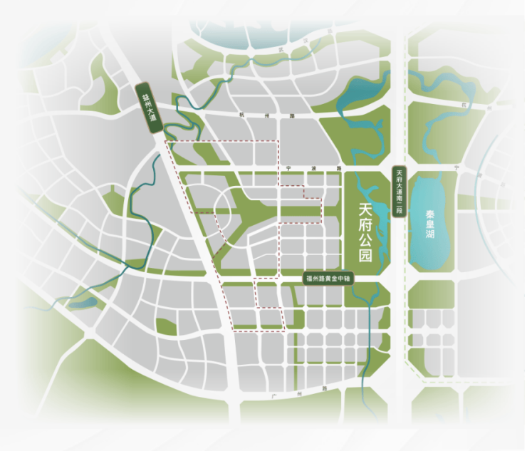 园区景不雅中轴,我们正在公园里建城市约800米步行可达天府七中,