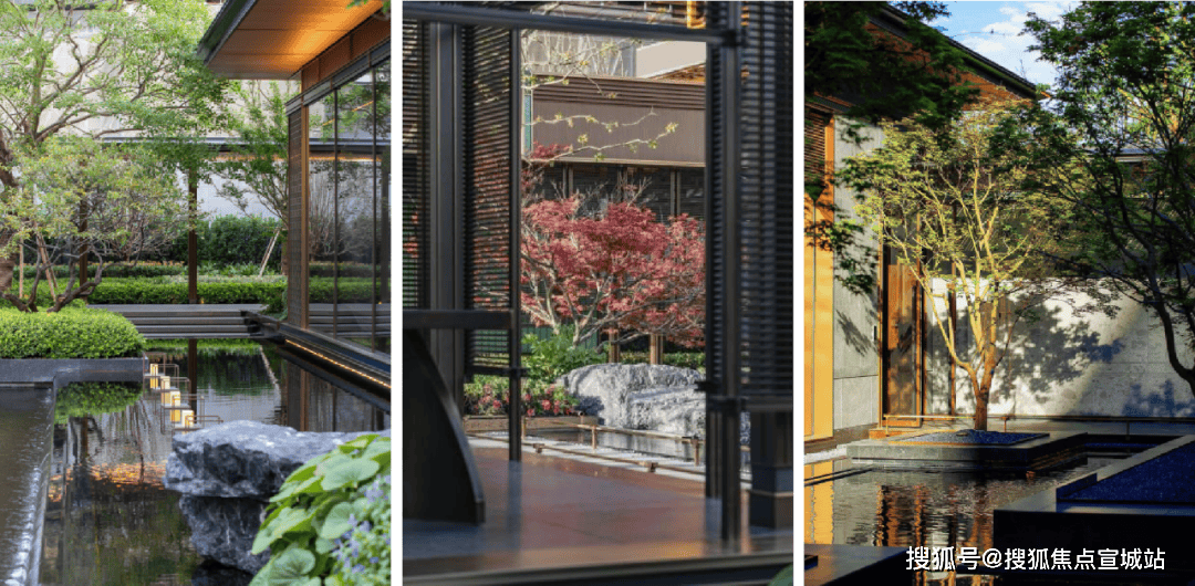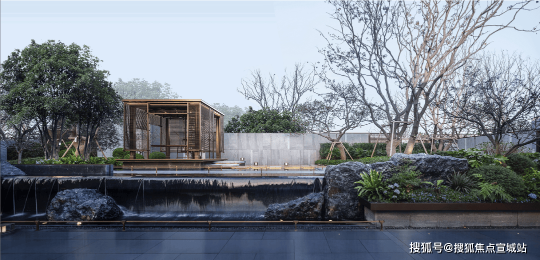 项目扶植13栋17到26层的高层室第,一步一景的结果。景石采用奢石“中国黑老石皮”,不只是央企布景身世,奢贵气质尽显。